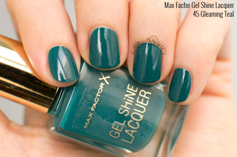 RO: Va mai aduceti aminte atunci cand v-am prezentat aratat oja Max Factor Gel Shine Lacquer Sheen Merlot? Atunci v-am prezentat si toata colectia si am zis ca ma bate gandul sa mai iau cel putin o oja pentru ca imi plac foarte mult culorile din gama. Ei bine, am mai pus mana pe Gleaming Teal si cum am purtat-o saptamana trecuta pe unghii, am profitat de ocazie pentru a o fotografia.